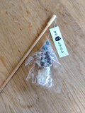 イベント用に棒付きのものを作りましたが、しばらく出店の予定がないので、こちらで販売します。棒の先に毛糸を巻いています。ポンドがはみ出ている部分があります。