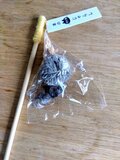 イベント用に棒付きのものを作りましたが、しばらく出店の予定がないので、こちらで販売します。棒の先に毛糸を巻いています。ポンドがはみ出ている部分があります。