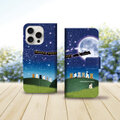 月夜の下でにゃんこ達が勢ぞろい。銀河鉄道バージョンのヌメ革風の風合いが特徴のスタンダード手帳型スマホケースです。