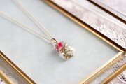 思っていたよりも、ペンダントトップが大きくて、私はこの位だといいなと思っていたので、とってもうれしくなりました!!お花が大好きで、特に白いお花が好きで、このネックレスには白いお花が入ってるので、大好きなお花を身につけられて、とってもうれしいです! 作って下さり、ありがとうございました。大切にします️