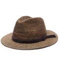 ラフィアハット、中折れ帽子男性、レトロ、パナマ帽、フェドーラ帽、麦わら帽子、夏用、ストローハット、日よけ・サイズ調節