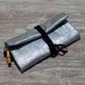 オーダー 道中財布 ロールバッグ コットンオックス水色地製 「シルバー調箔」