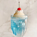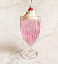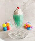 ソーダ水を注ぎ、アイスクリームとさくらんぼを飾りました