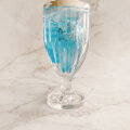喫茶店風の足つきのグラスにかち割り氷を入れて