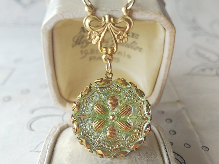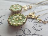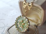 ヴィンテージ 淡いペリドット色、Ribbon/floral お花のネックレス