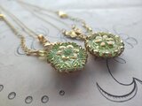 アジャスター先にも極く淡いペリドット色のチェコのGlassビーズを1粒お付け致しました。淡い春色ペリドットカラーをどうぞお楽しみ下さい。