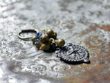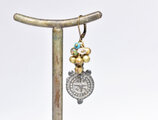 羅針盤の様なヴィンテージインドメタルとたわわな民族鈴、オパール、ハーキマーダイヤモンドの片耳ピアス