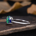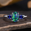 ユニークな 10 月の誕生石ブラック オパールの婚約指輪 9 月の誕生石ブルー サファイア リング ジュエリー