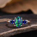 宝石: 6x8mm オーバル カット ラボ ブラック オパールと 3x4mm ペア カット ラボ ブルー サファイア