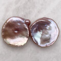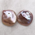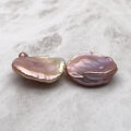 真珠の卸屋ならではの照りのしっかりある約19mmの大粒バロック淡水パールのペアを厳選いたしました。自然の中で育まれた艶やかなパープル系の色味は光の加減で表情を変え美しいです。