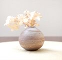 ころんと丸い形が可愛らしくも、素朴で渋みのある、和室にも洋室にも合う花器に仕上がりました。