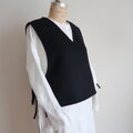 ボリューミーな袖のブラウスなどの上にも重ねやすく、サイドリボンでゆとりの調整が出来ます