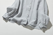 シンプルながらもこだわりのディテールが光る一枚 フランス産リネン100% ストライプシャツ 薄い水色250410-2