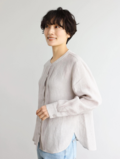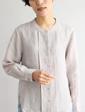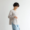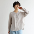 シンプルながらもこだわりのディテールが光る一枚 フランス産リネン100%ストライプシャツ ベージュグレー250410-3