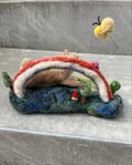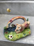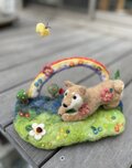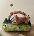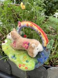 しば犬さん、虹のお花畑でいっぱい駆け回ってひと休み。