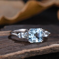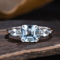 宝石: 7x7mm アッシャー カットと 3x4mm ペアー カット ナチュラル アクアマリン、1.5mm ラウンド カット ラボ アレキサンドライト