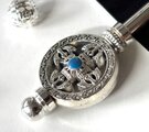 かんざし アジアンシルバーのコイン型ビーズ 表裏リバーシブルデザイン 青&赤 ブルー レッド 一本簪