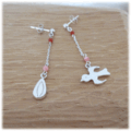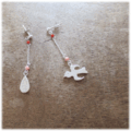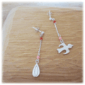 トリとしずくのモチーフと小さなコーラルが耳元でゆらゆら