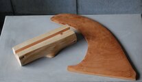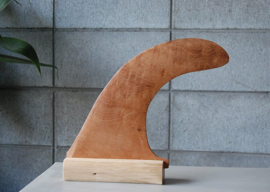 けやきの木目が美しい、サーフボードのフィン。