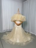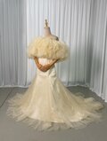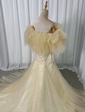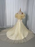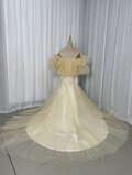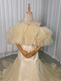 カラードレス 薄シャンパンの色 オフショルダー デザイン感 キラキラチュール 細見えシルエット 前撮り