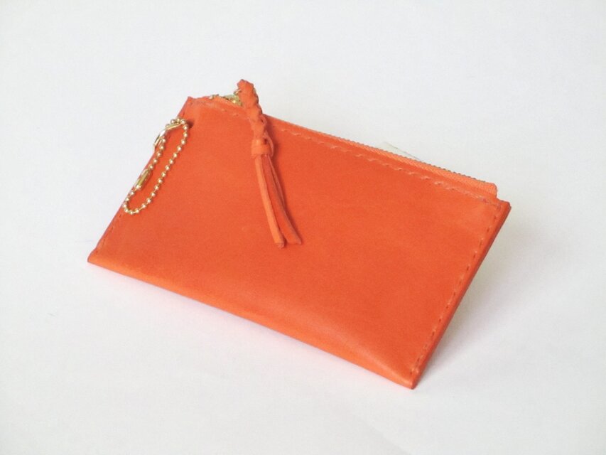 イタリア革ブッテーロのカード、小銭、キーなどケース(オレンジ)