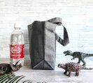 ステゴサウルスの刺繍が施された、シンプルなミニトートバッグのご紹介です。グレーの帆布素材は、どんなシーンでも使いやすく、ランチバッグやちょっとしたお出かけに最適なアイテムです。