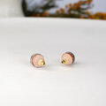 T-251 美濃焼 金絵付けのタイル 小丸 ピアス / イヤリング【 裏面レザー加工 】