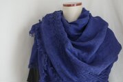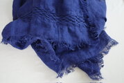 浮彫風のスモッキング刺繡を施し、フリンジ付きの大判ストールを作りました。