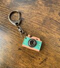 革のミニカメラキーホルダー・ミントグリーン×ナチュラル・プレゼントにも