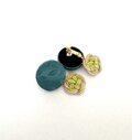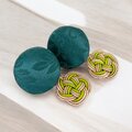艶やかな深緑の華紋唐草地紋の京都金襴で作った包みぼたんイヤリング。
