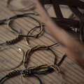 真鍮のビーズと細いコードを使い、オリジナルデザインで作った