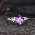 2月の誕生石 天然アメジスト エンゲージリング 925スターリングシルバー パープルクリスタルリング ムーンスターリング