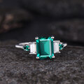 サイドストーン:バゲットカット モアッサナイトとペアカット ラボエメラルド
