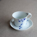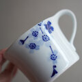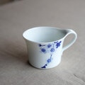 染付焼の伝統技法である太い筆を使って描くダミという技法で手描きしています。