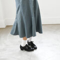 ひざから裾にかけて更にフレア分量が増えており、よりフェミニンな雰囲気に仕上げました。