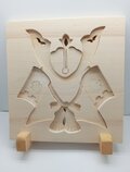 杉の間伐材を使用して作りました。こちらは大きいサイズの物となります。重さ430g・横幅22.2㎝・高さ24.5㎝・奥行約6㎝。こちらも接着しています。ご自分で思いを込めて色を塗って、完成させてお孫さんにプレゼントしてください