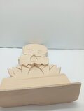 杉の間伐材を使用して作りました。もともとはペットの仏壇に飾ろうとして作っていたのですが、ありがたい事に次々とご要望頂いて、今では追いつかない程になりました。こちらは大きいサイズです。重さ198g・高さ23.5㎝・幅16.5㎝・奥行5.3㎝。蓮の花や、お地蔵さまにも、お色を塗って磨いてさしあげてください