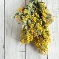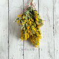 見るだけで心が弾むような鮮やかな黄色のミモザのスワッグです。