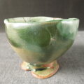 古典的な織部釉を使用しましたが、使って楽しいぐい呑みをと思い、形にとらわれることなく自由に作ってみました。