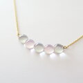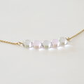 ライトグレーとピンクの透明ガラスのネックレスです。