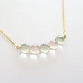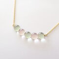 オリーブグリーンとコーラルオレンジの透明ガラスのネックレスです。