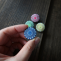 糸をぐるぐると巻きつけて繊細な幾何学模様を描き出すおかもとかもの【糸まき】。子どもの頃に好きだった工作物をベースにして生まれ、3つのこだわりをもって作っています。