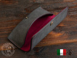 ●裏地は国産豚のスエードのワインレッドを使用。柔らかい肌触りで眼鏡を傷付けません。
