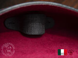 ●表面の革はイタリアのタンナー、Tempesti社のバベル。植物タンニンで鞣し染色した後に吟面(革の表面)をスクラッチする加工を施し、さらにワックスで仕上げた非常に手の込んだ革です。表面に見える白っぽいものはワックスで、時間の経過と共に皮に染み込み表情が変わっていきます。カラーはNero。