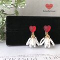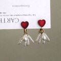ぷっくりとした赤いハートのガラスに ドロップ型の貝パールと 小さなパールビーズを贅沢にあわせて 可愛いイヤリングにしました。