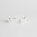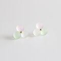 ピンク、グリーン、クリアの小さな粒ガラスを電気炉で溶かし合わせ、フロスト加工(艶消し)したピアス/イヤリングです。
