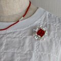 花びらけしパールとサンゴをシャワー金具に縫いとめてブローチにしました