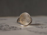 一見モダンでシンプルなリングですが、その裏側は旧通貨だった50サンチームのコインです。