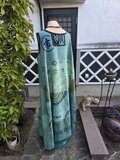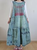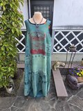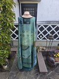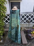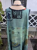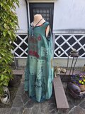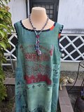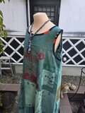 染めた手ぬぐいをリメイクしてジャンパースカートを作りました。