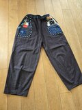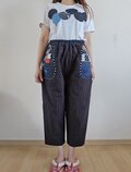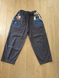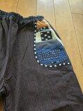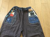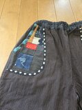 かすりのパッチワークが とっても丁寧で 美しく 色とりどりの生地も素敵にコラボ! 刺し子も 綺麗なラインで 美しい。 生地を 惜しげなく贅沢に使って 普通のパンツだと 2枚は 十分取れそう。 ワンピースにすれば とっても素敵になりそう。 プチプレゼントも 可愛い。